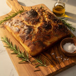 The original and always a favourite. Made with our signature sourdough base, this loaf is airy, golden, and perfectly crusted. Topped with fresh rosemary, extra virgin olive oil, and flaky sea salt. It’s fragrant, crisp-edged, and versatile. Whether served alongside a meal or enjoyed warm on its own, this is the one that goes with everything.