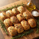 All the goodness of our signature loaf, miniaturized for maximum crunch. Made with our classic sourdough base, topped with the same extra virgin olive oil, same rosemary, same flaky sea salt—just in a snackable, event-ready size.